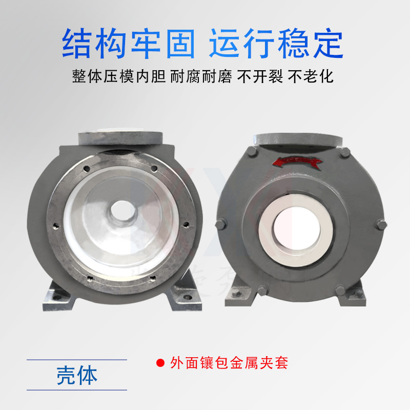 KJB型耐腐耐離心泵,又稱夾板泵,是參照國外夾板泵技術(shù),重新研發(fā)優(yōu)化而成,過流部件使用耐腐耐磨超高分子量聚乙烯、聚偏氟乙烯等材料制造。泵殼為分體式夾套,內(nèi)鑲可拆卸式泵體,整體結(jié)構(gòu)厚實(shí),運(yùn)行穩(wěn)定,能有效杜絕長期室外運(yùn)行造成的塑料模壓件老化等現(xiàn)象。葉輪采用半開式結(jié)構(gòu),背葉板上均勻分布葉片,流道加寬介質(zhì)通過率高。密封使用耐腐耐顆粒集裝式雙端面機(jī)械密封,并可根據(jù)用戶需求配置相應(yīng)的沖洗方案。